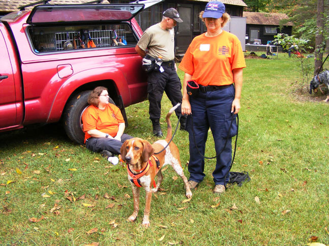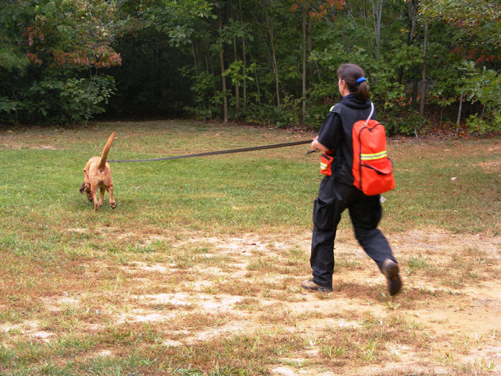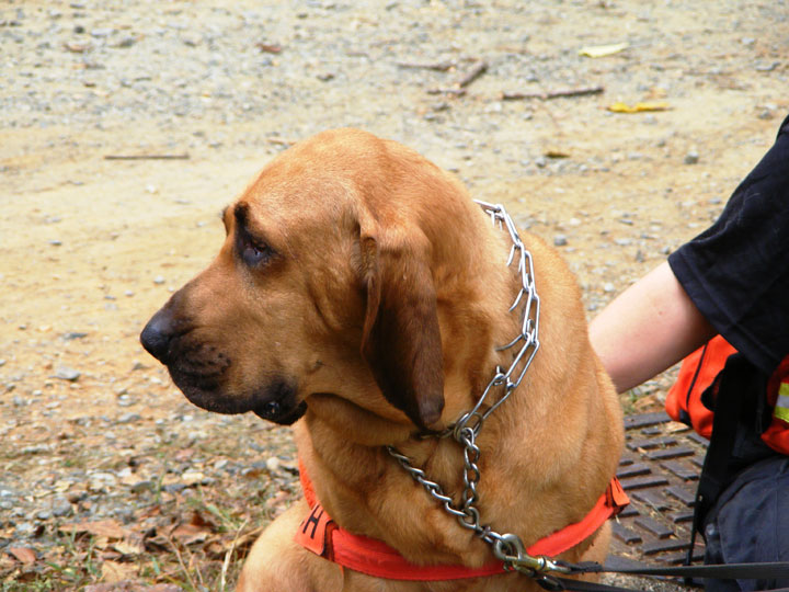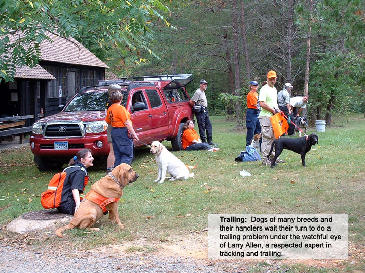 2007 - Trailing dogs search for scent with noses down to the ground. |